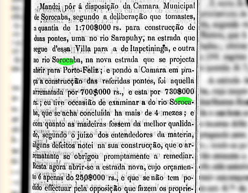 Presidente da Província sobre as pontes de Sorocaba