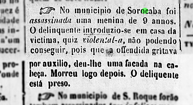Após tentativa de estupro, homem mata menina de 9 anos Data:01/01/1856
