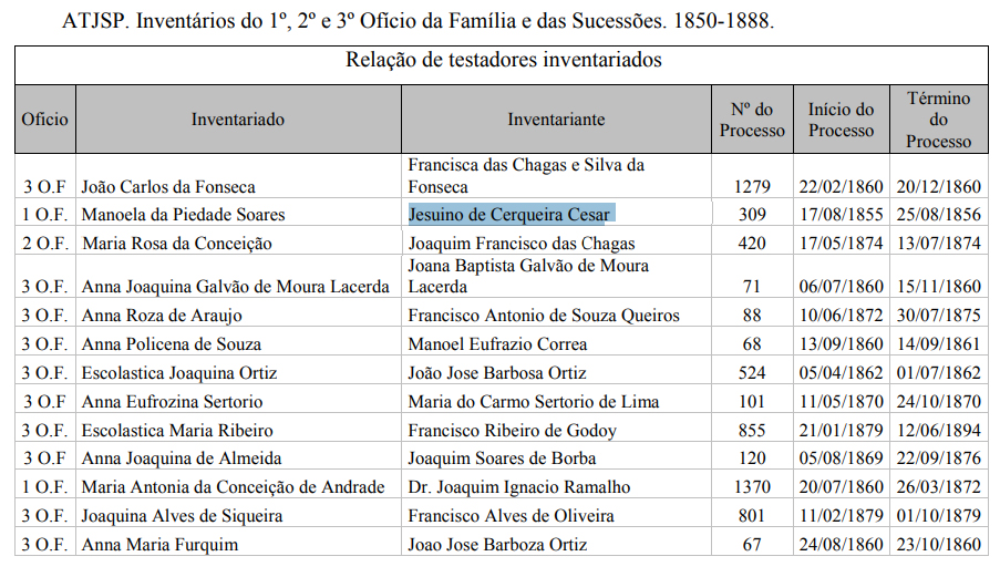 Inventário de Jesuíno de Cerqueira César Data:01/01/1856