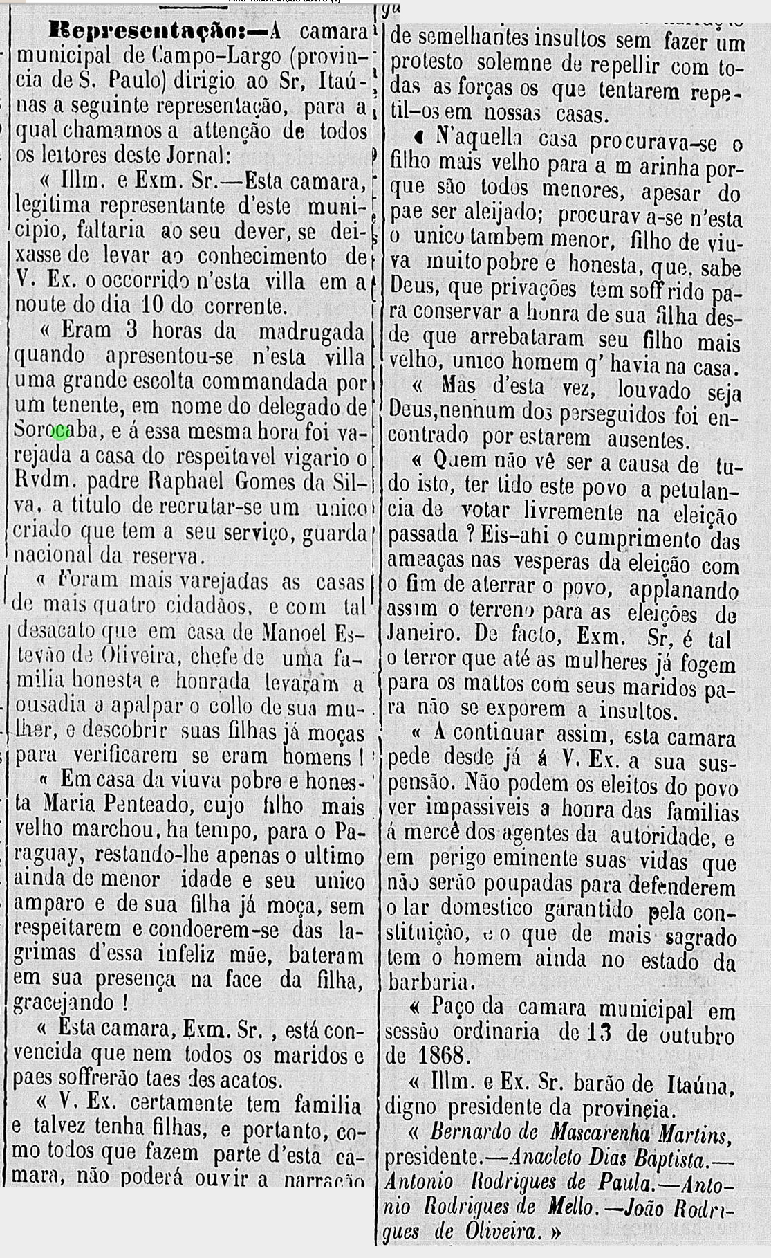 | | | Caso que causou indignação pública Data:13/10/1868 |