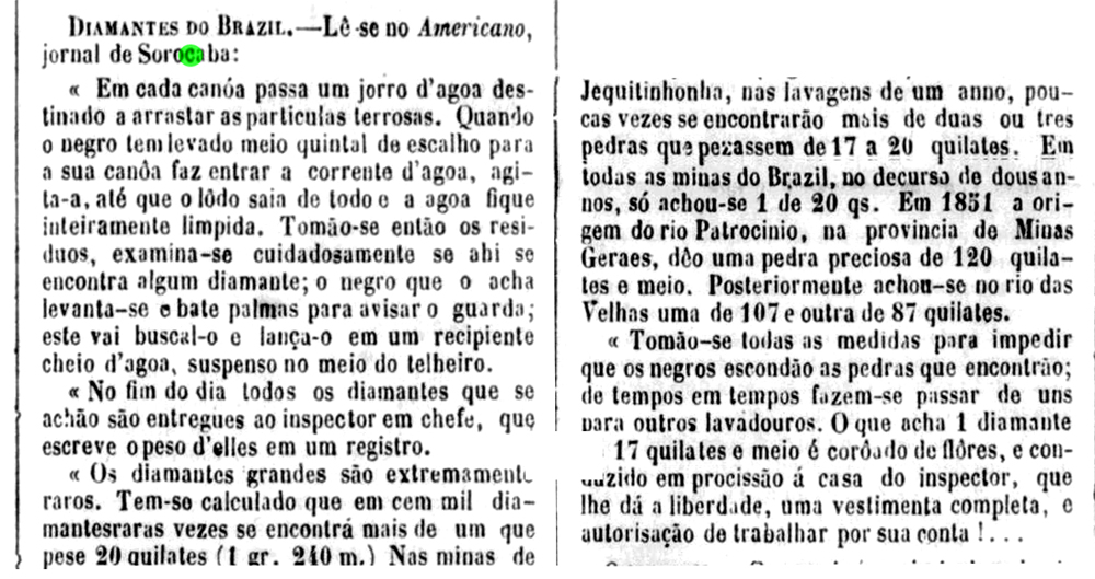 Diamantes em Sorocaba Data:01/01/1871