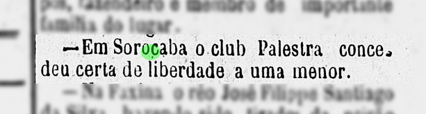 Club Palestra liberta jovem escravizada Data:22/01/1871