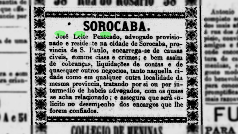 Anúncio de José Leite Penteado Data:01/01/1871