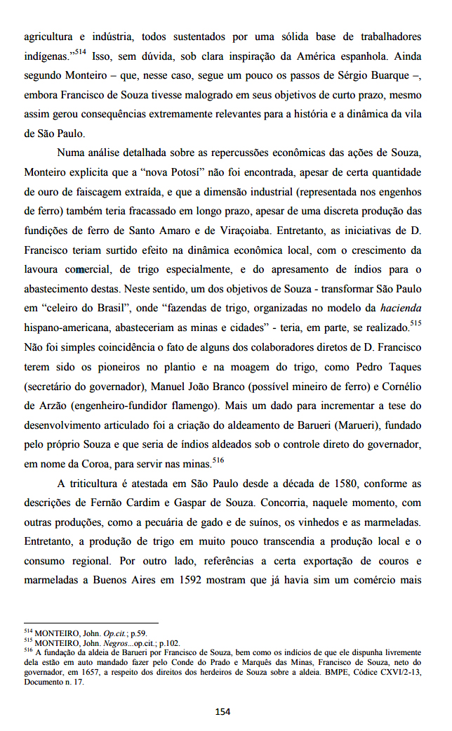 Nos limites desta capitania pela terra adentro obra de quarenta léguas estão as minas de ouro e prata que Dom Francisco de Sousa diz ter descobertas, as quais muitos anos antes se tinha notícia e por boa razão de philosophia esta região do Brasil deve ter mais e melhores minas que as do Peru por ficar mais oriental que ela e mais disposta para a criação de metais.385 [Biblitoeca D´Ajuda. Códice 51-IX-25, f.142, Lisboa. “São Paulo na órbita do Império dos Felipes: Conexões Castelhanas de uma vila da américa portuguesa durante a União Ibérica (1580-1640)” de José Carlos Vilardaga, 2010. Páginas 119 e 120]